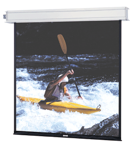 This electrically operated, retractable projection screen features an infrared remote control unit integrated into the case. It is designed with a very stylish curved aluminum extruded case, and has dimensions of only 4-5/8" high and 4-3/32" deep (making the Designer Contour small enough to fit into any installation). The screen is controlled by a three button remote transmitter and is available in seven veneer finishes available for the front cover of the screen case (for a warm and elegant look). The Designer Contour is available in sizes from 50" to 96" wide in square and comes in video and HDTV formats.